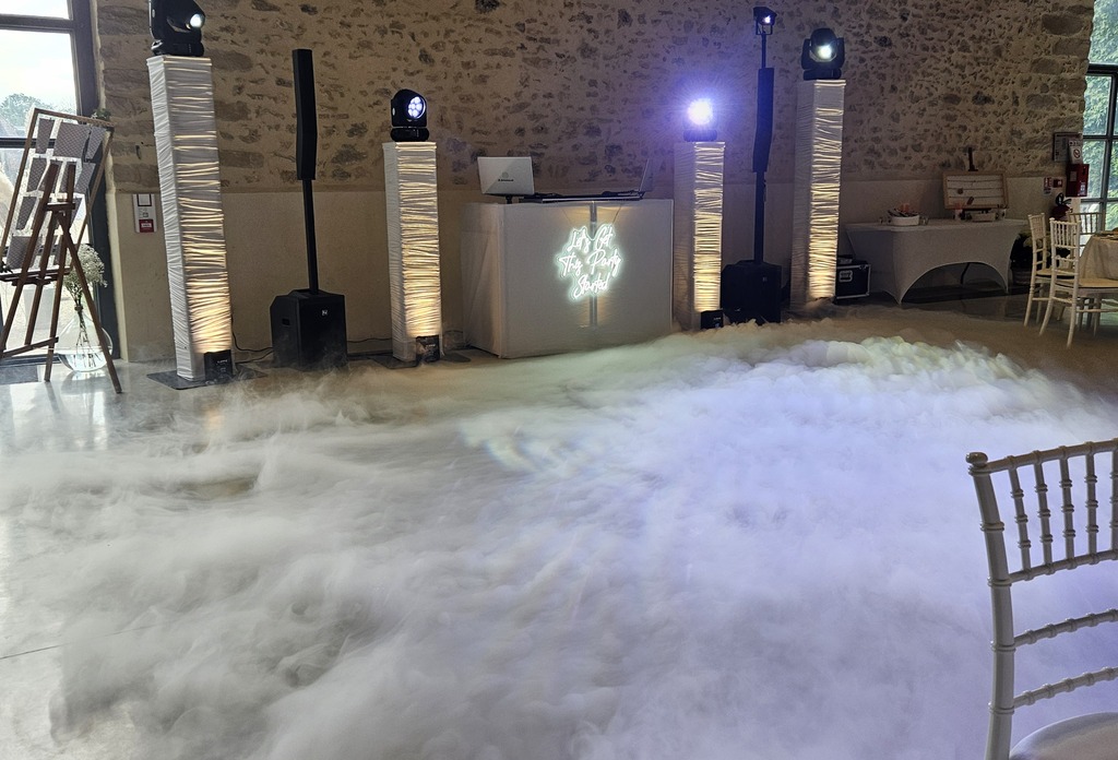 Transformez votre mariage en un rêve avec notre option fumée lourde, idéale pour une ambiance féérique sur la piste de danse.
