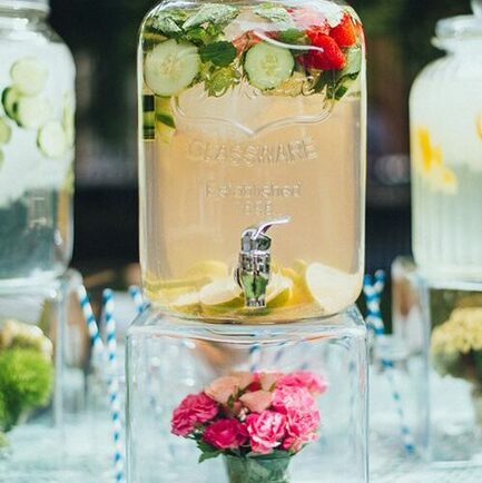 Un bar à eau pour accueillir et rafraîchir les invités dès leur arrivée à la cérémonie, quelle excellente idée ! Avant de verser des larmes de bonheur durant la réception et l’échange des vœux, il est judicieux de permettre à vos invités de se désaltérer et de se réhydrater, anticipant ainsi les moments émotionnellement intenses.